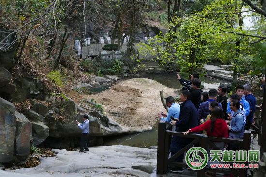 選擇天柱山,理由一串。新春,隨著《相約1998》的歌聲,相約悠悠,歲月悠悠。經(jīng)過(guò)三載的齊心協(xié)力的創(chuàng)建,單位終獲桂冠,一場(chǎng)盛大的歡喜之后,隨著而來(lái)就是這是外出獎(jiǎng)勵(lì)。一個(gè)大巴,近50人的團(tuán),大巴車(chē)中不知裝滿了多少欣喜、歡喜甚至驚喜。天柱山的了解,多是碎片化的,偶讀余秋雨的《寂寞天柱山》也是驚鴻一現(xiàn),思緒多在患得患失中飄逸。正如我長(zhǎng)期琢磨的一個(gè)問(wèn)題,如果當(dāng)年李白能久久在潛山尋景,在多些日月在天柱山下靜修,或許那首詩(shī)就是:相看兩不厭,唯有天柱山了,換成這般地贊嘆,必定是游園驚夢(mèng),姹紫嫣紅了,也不必會(huì)有“寂寞天柱山”之感慨了。而恰恰相反的是李白把天柱山當(dāng)“家”了,來(lái)了句:“待吾還丹成,投跡歸此地?!弊屘熘降攘撕脦啄?。