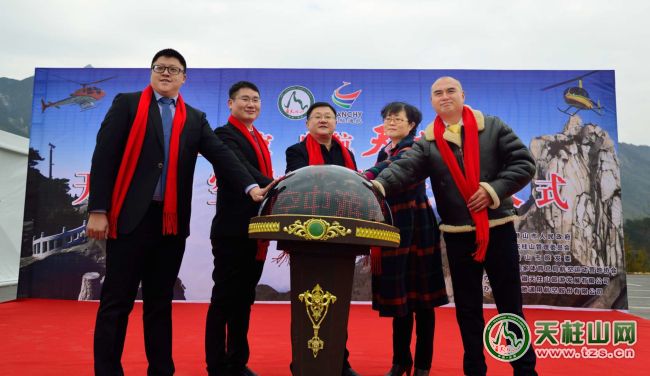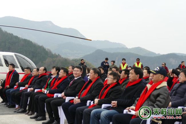 2019年1月25日上午,“空中看天柱”天柱山低空飛行旅游開航儀式在茶莊P1停車場(漢馳航空飛行基地)舉辦。儀式由潛山市人民政府、天柱山管理委員會、潛山市旅發(fā)委和國家體育總局航空運(yùn)動營地指導(dǎo),安徽天柱山旅游發(fā)展有限公司主辦,漢弛通用航空股份有限公司承辦。潛山市委常委、天柱山管委會主任涂高生,潛山人民政府副市長蔡婷婷,國家體育總局航空運(yùn)動營地標(biāo)準(zhǔn)修訂專家委會委員何馳,漢馳通用航空股份有限公司董事長涂楓,漢馳通用航空航空俱東部總經(jīng)理查雄風(fēng)等嘉賓共同啟動開航儀式。市文化委、市旅發(fā)委、招商局、天柱山鎮(zhèn)、天管會等單位領(lǐng)導(dǎo)和主要負(fù)責(zé)人;項目建設(shè)合作運(yùn)營機(jī)構(gòu)、新聞媒體記者和現(xiàn)場旅客等近200人共同參與開航儀式和首航試飛活動。