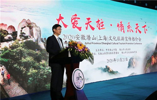 人民網(wǎng)上海10月21日電? ?今天上午,由中共潛山市委、潛山市人民政府主辦的“大愛天柱 情系天下” 2020安徽潛山(上海)文化旅游宣傳推介會(huì)在上海浦東新區(qū)舉行。潛山市委書記張勁松、上海市文化和旅游局宣傳推廣處處長(zhǎng)陳平致辭,市委副書記、市長(zhǎng)梅耐雪推介潛山全域旅游,市委常委、天柱山風(fēng)景區(qū)管委會(huì)副主任涂高生推介天柱山旅游,景域驢媽媽集團(tuán)董事長(zhǎng)、上海市安徽商會(huì)會(huì)長(zhǎng)洪清華講話。市領(lǐng)導(dǎo)黃銀枝、郭玉晟、陳茜、余永燦、邵偉民、汪世平、林斗喜、蔡婷婷、程赟、趙偉出席推介會(huì)。