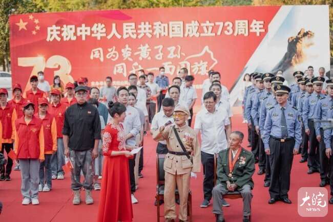 升旗儀式上,抗美援朝老兵面對(duì)“保家衛(wèi)國 中國人民志愿軍抗美援朝72周年”大型畫板心情激動(dòng),現(xiàn)場(chǎng)重溫了他們?cè)趹?zhàn)場(chǎng)上殊死戰(zhàn)斗的不凡經(jīng)歷和感人故事。