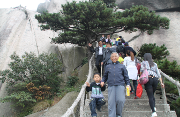 特色: 10月14日(農(nóng)歷重陽節(jié)),李大爺帶著孫子相約廣場舞的伙伴們一起登天柱山。李大爺還為此次登山之行,美名曰:“最美不過夕陽紅,我與天柱試比高”,用這種特殊的方式來紀(jì)念九九重陽節(jié)。天柱山的秋日,層林盡染,五彩斑斕。奇石羅列的巖壁、山峰,在松、楓、黃楊等顏色的點(diǎn)染中,顯得格外險(xiǎn)俊、亮眼。登山的石階在峽谷中時(shí)隱時(shí)現(xiàn),蜿蜒如游龍,偌大的山谷,仿佛一座迷宮,神秘莫測...