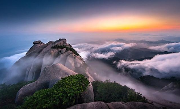 特色: 薄霧纏玉帶,云濤波流涌。昨日,在天柱山驚現(xiàn)絕美云海奇觀,萬余名游人目睹了如此勝景。當(dāng)日,5時(shí)許,在近一個(gè)小時(shí)的期盼與等待中,一輪圓日,終于噴薄而出于東方,朝陽染紅了天際,金色照耀著大地,光輝萬丈,氣勢恢宏,也就是在那一瞬間,云海翻騰。翻騰的云海猶如大海的波濤,變幻莫測,此情此景,宛如走進(jìn)了一幅丹青水墨的畫卷。潔白的云霧形成廣闊的云海環(huán)繞天柱峰,山峰周圍被潔...